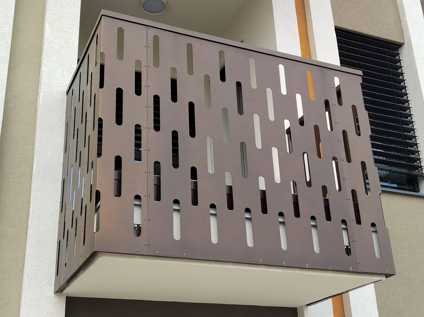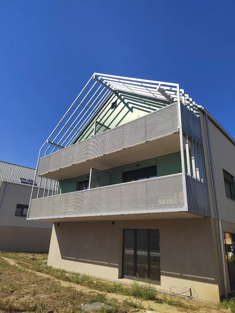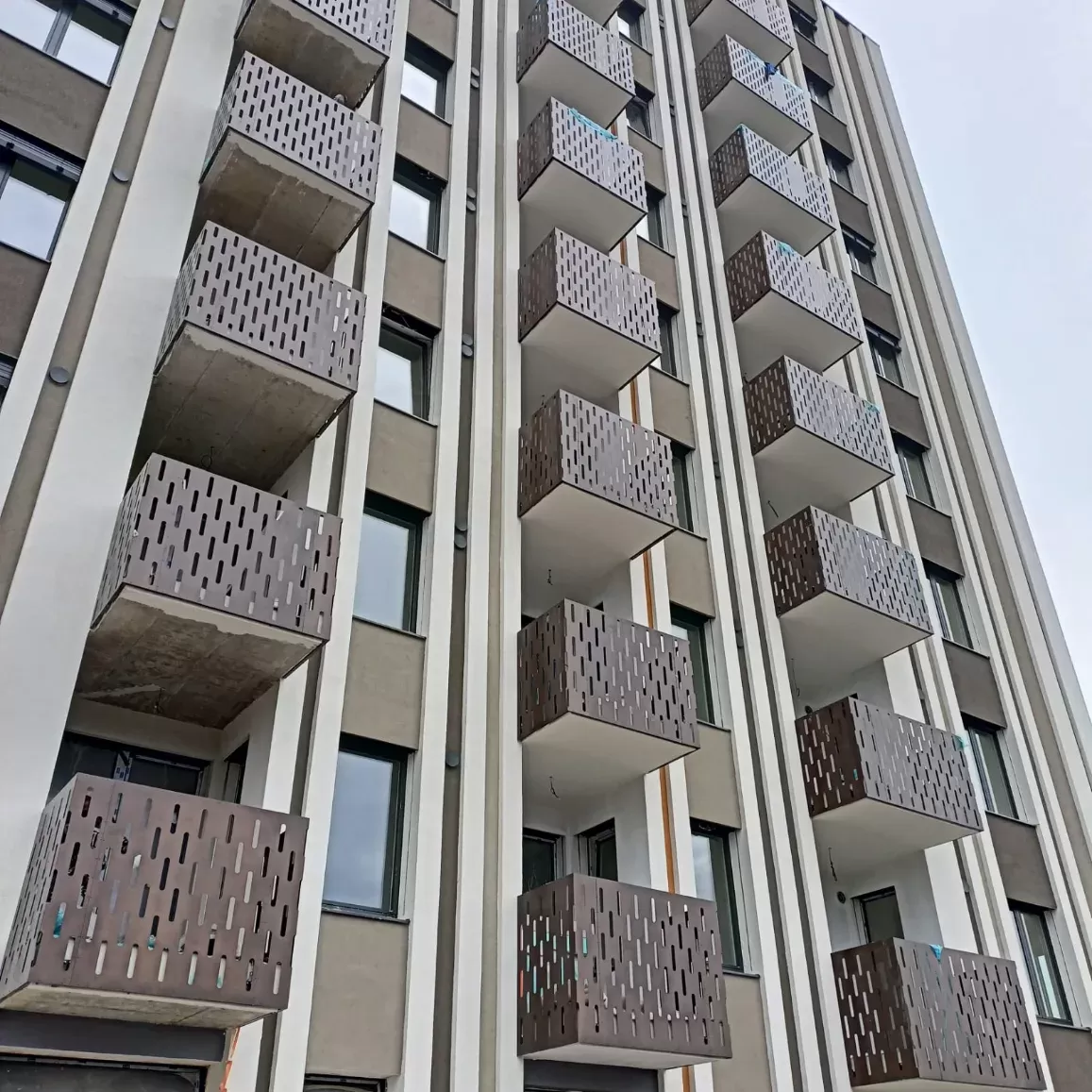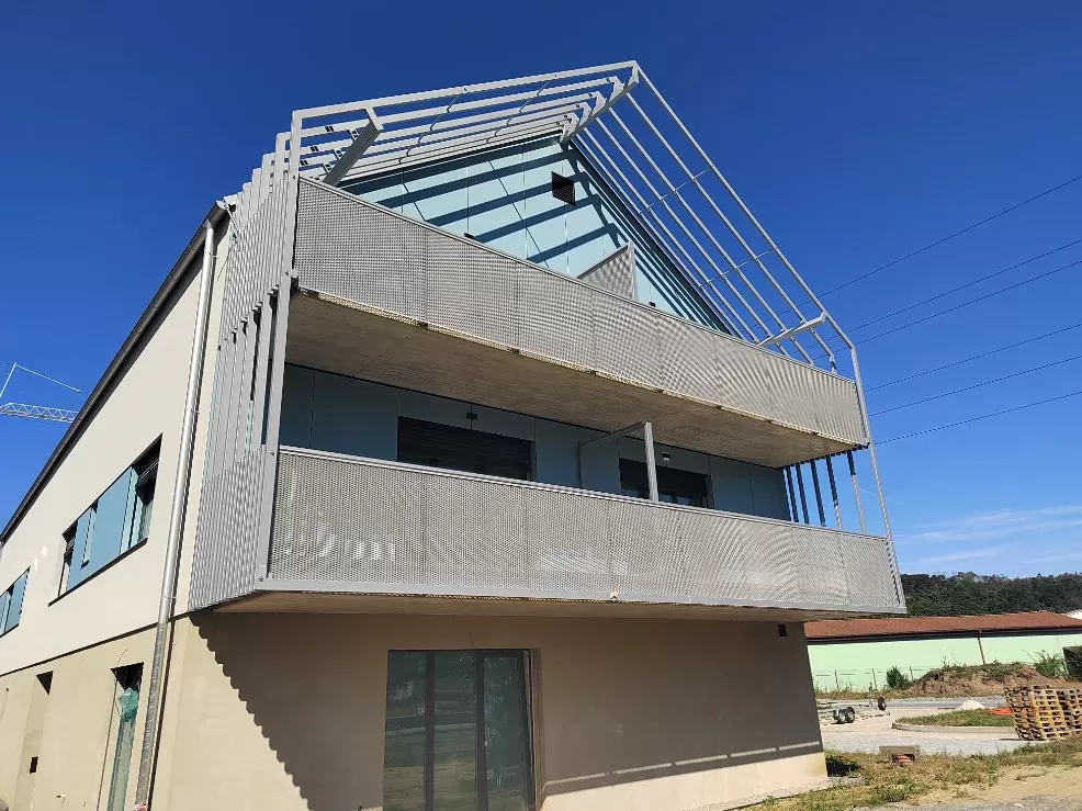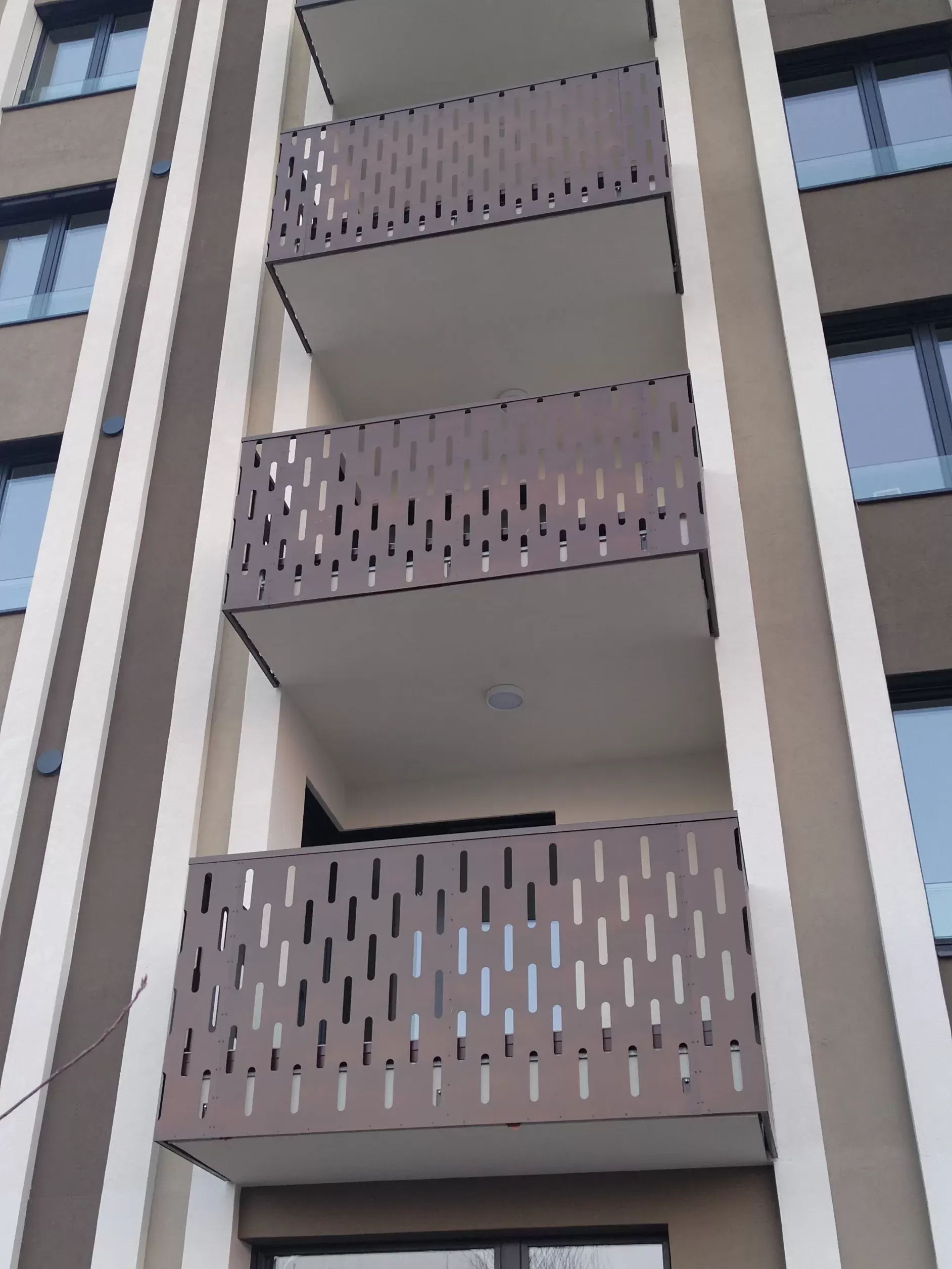 Použití: Výplně balkónů bytového domu | Typ: Děrovaný plech Rv 30-42 | Materiál: Pozinkovaný plech 1,5mm