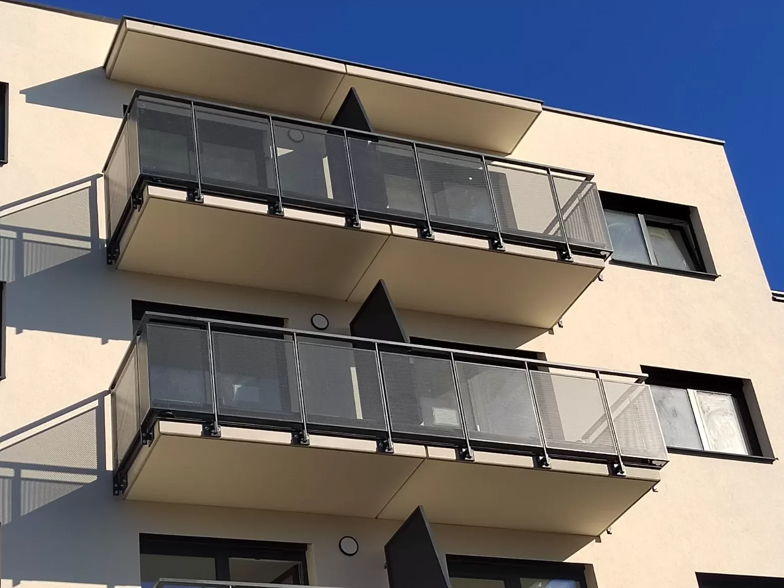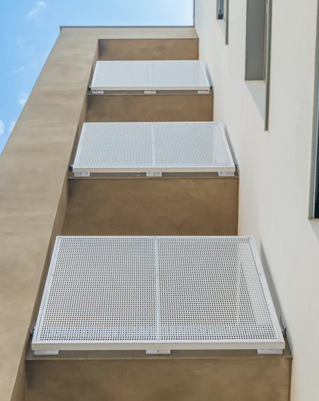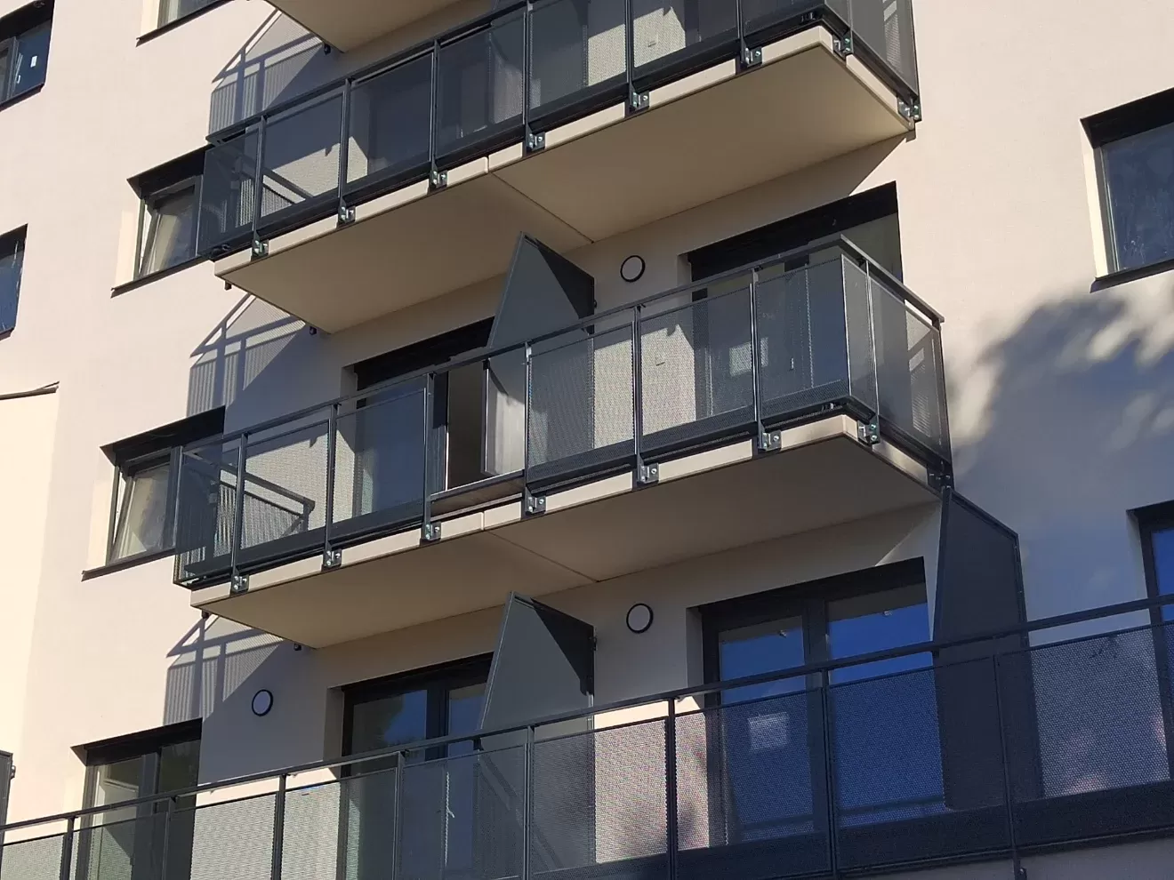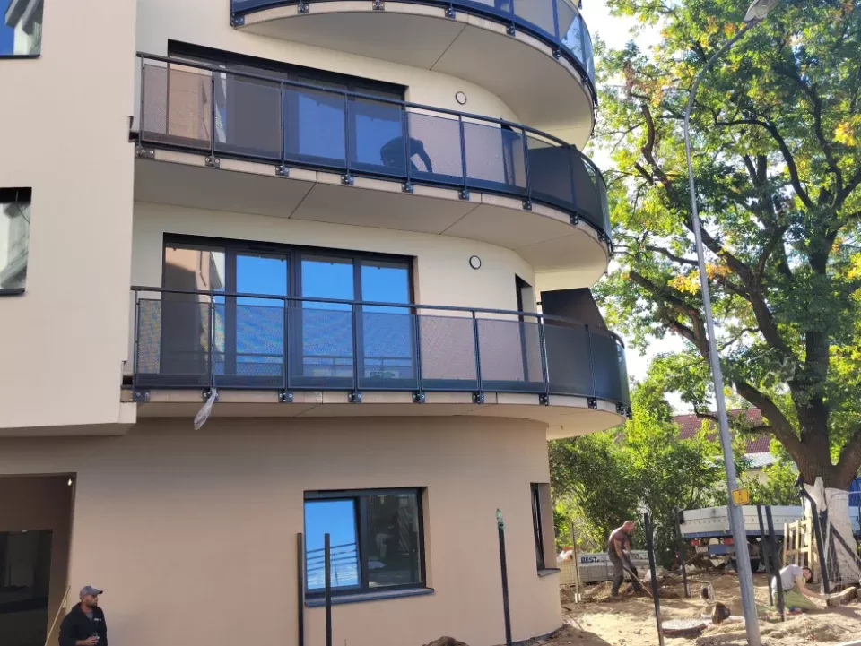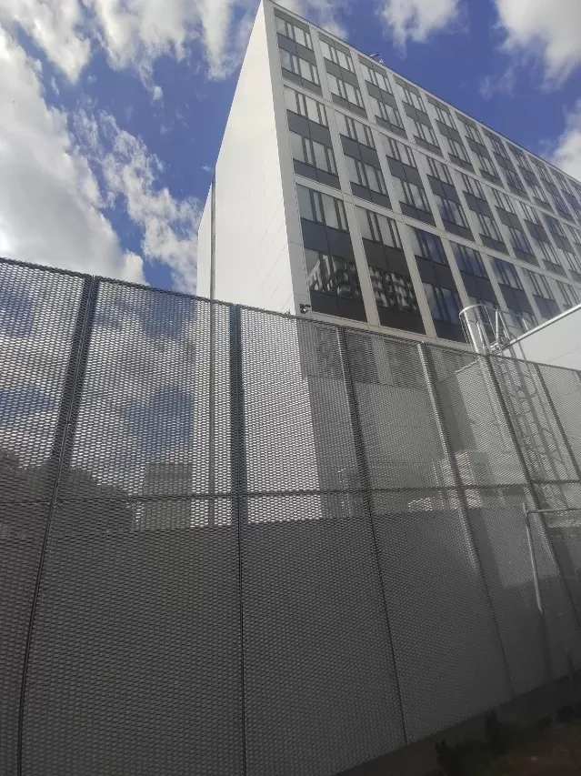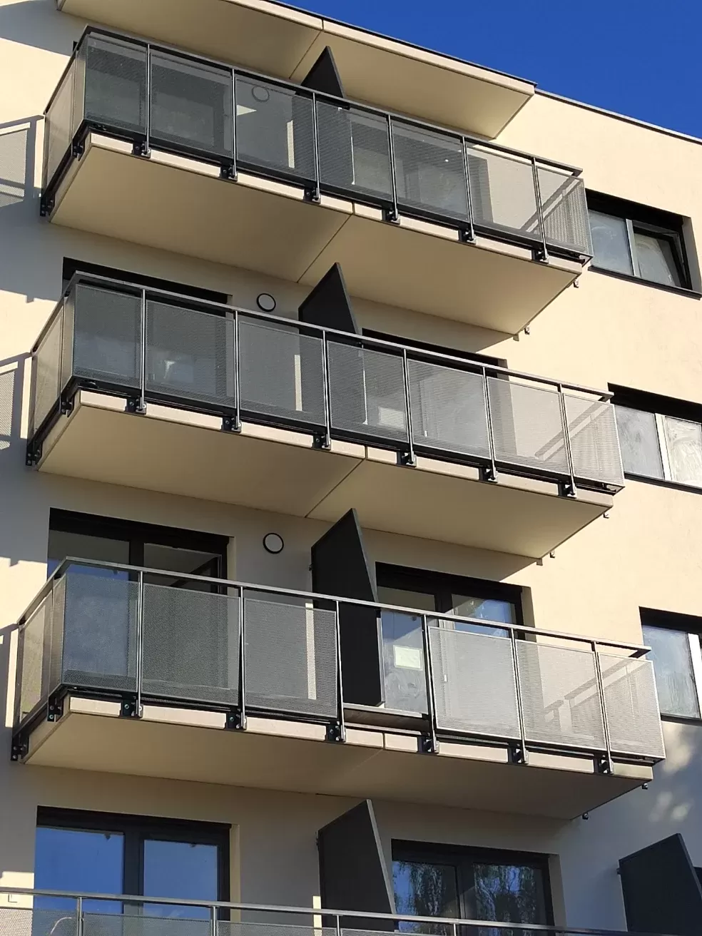 Použití: Výplně balkónů bytového domu | Typ: Děrovaný plech Rv 30-42 | Materiál: Pozinkovaný plech 1,5mm