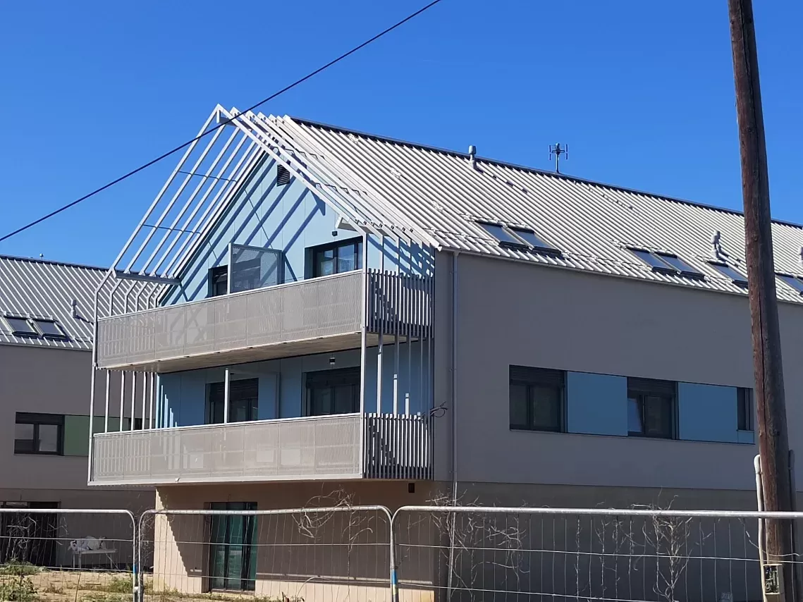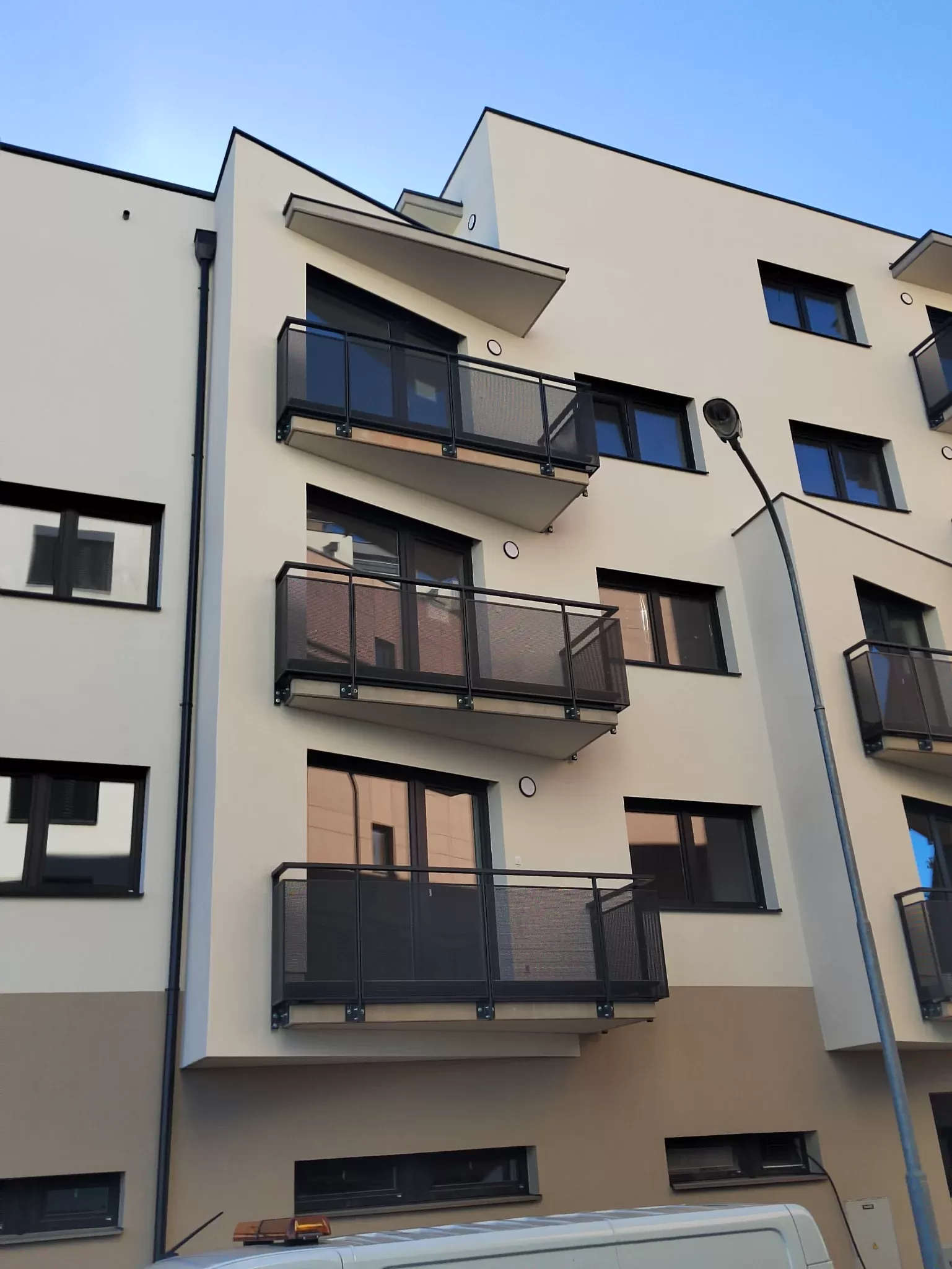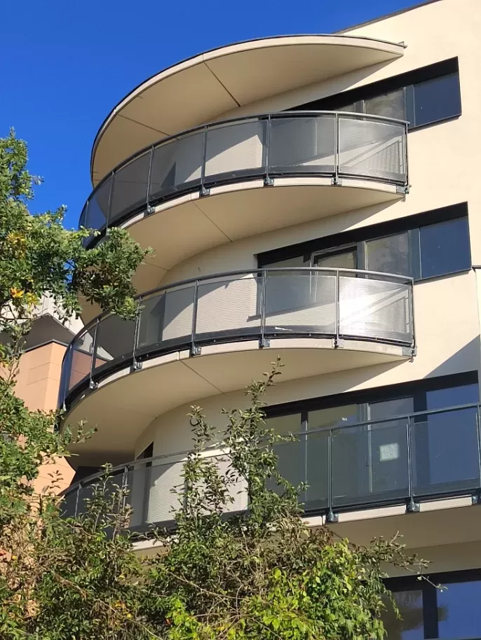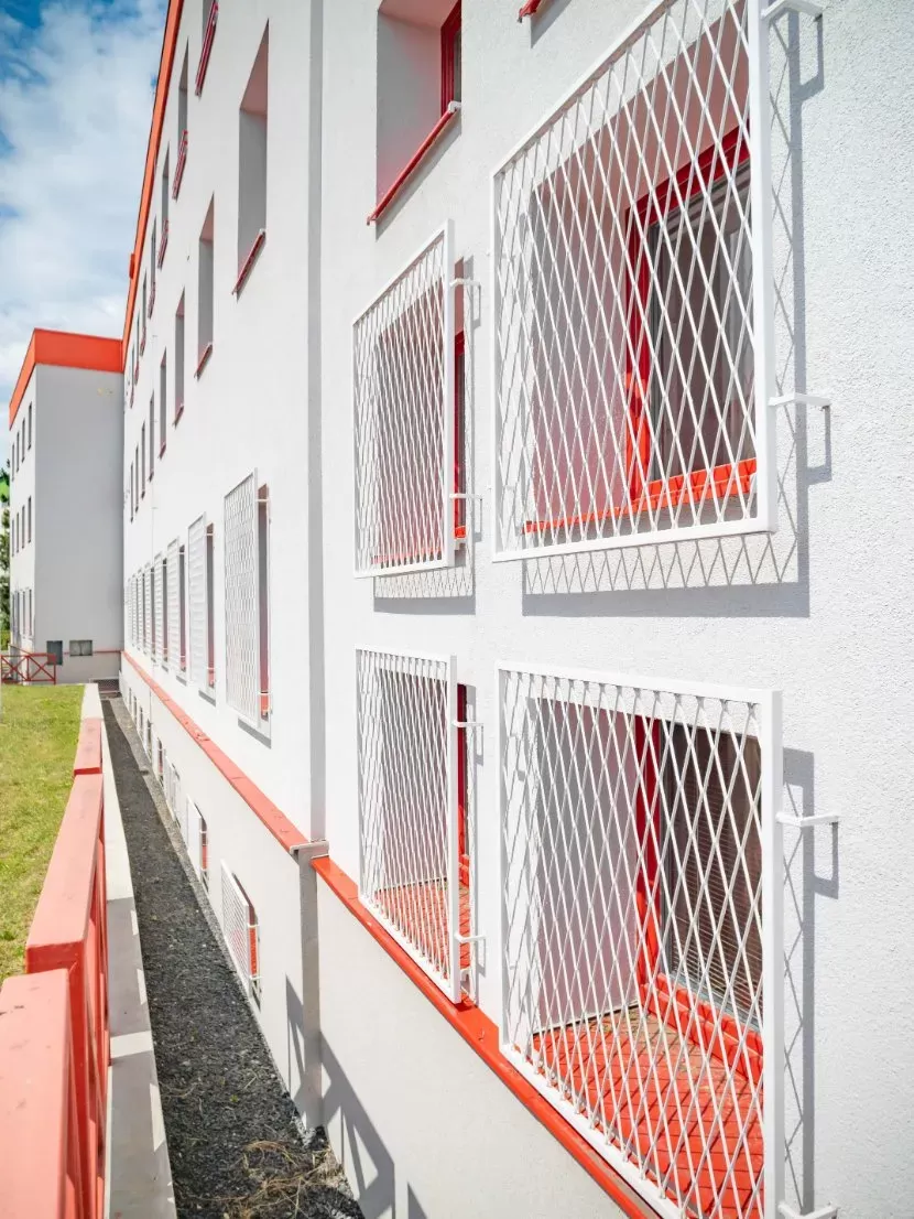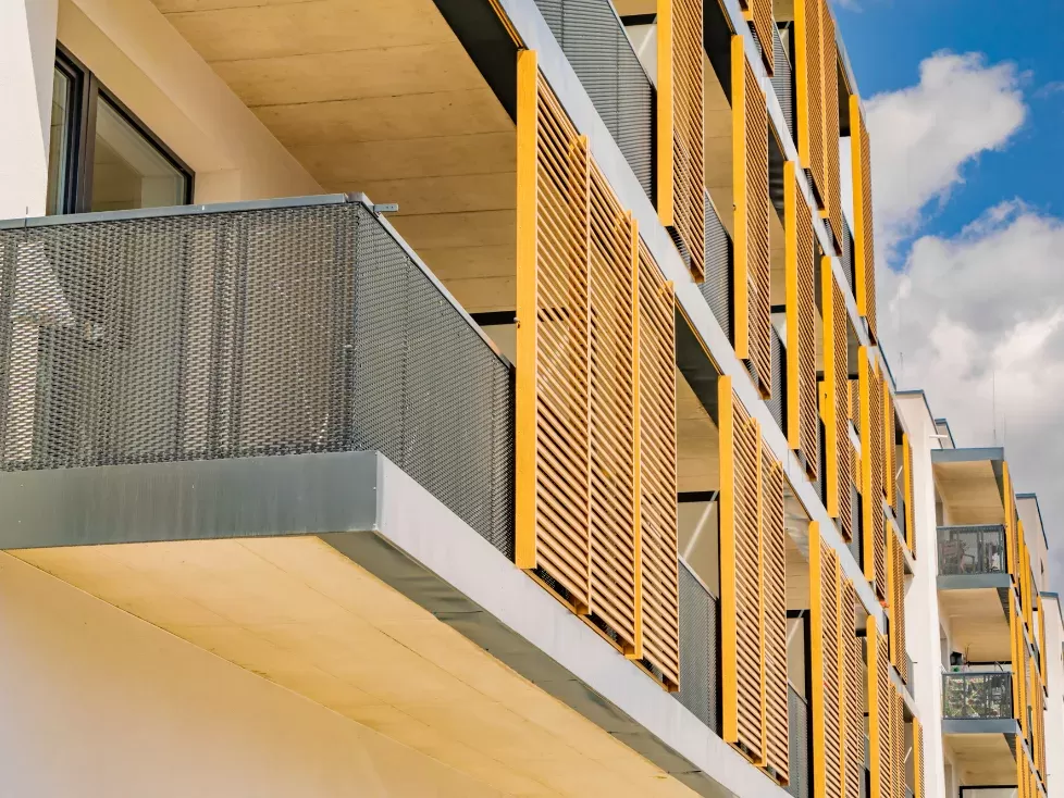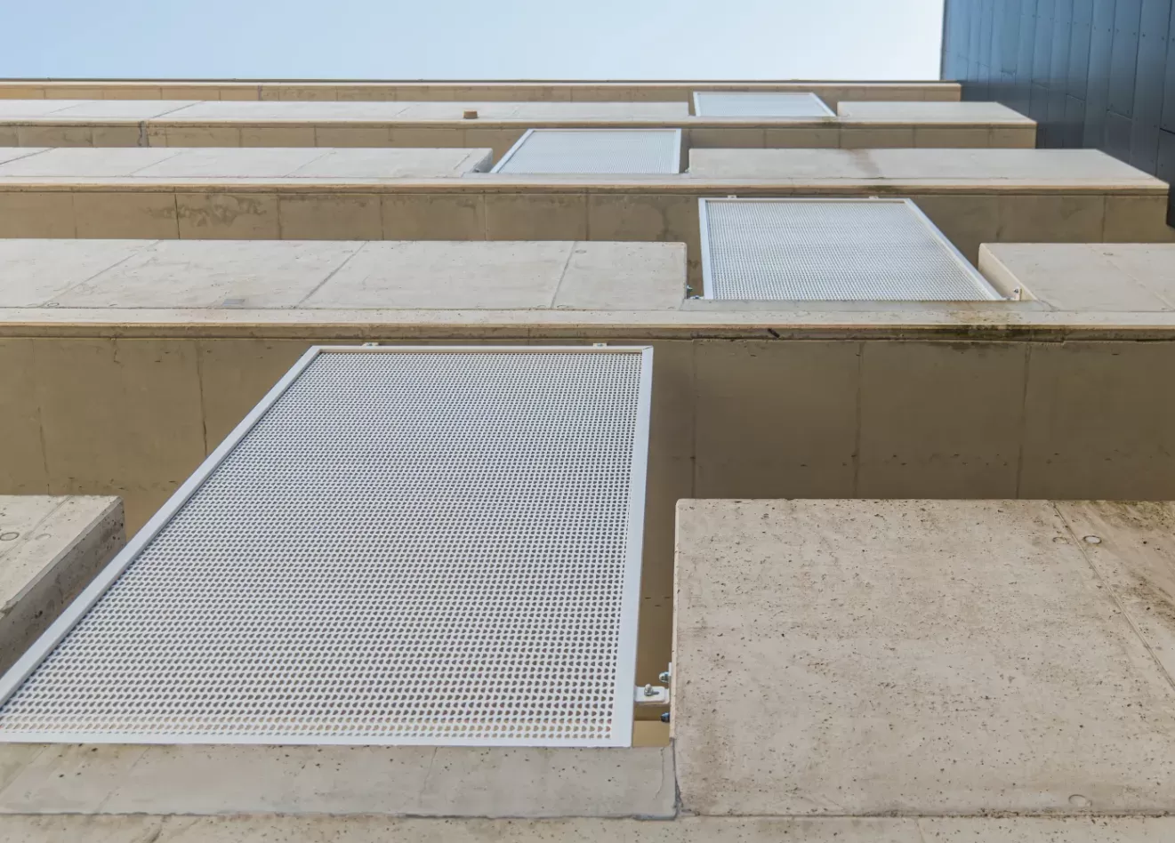 Použití: Výplně balkónů bytového domu | Typ: Děrovaný plech Rv 30-42 | Materiál: Pozinkovaný plech 1,5mm