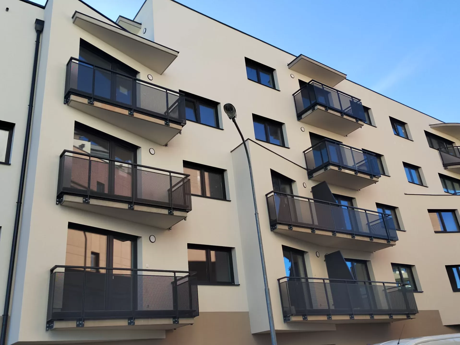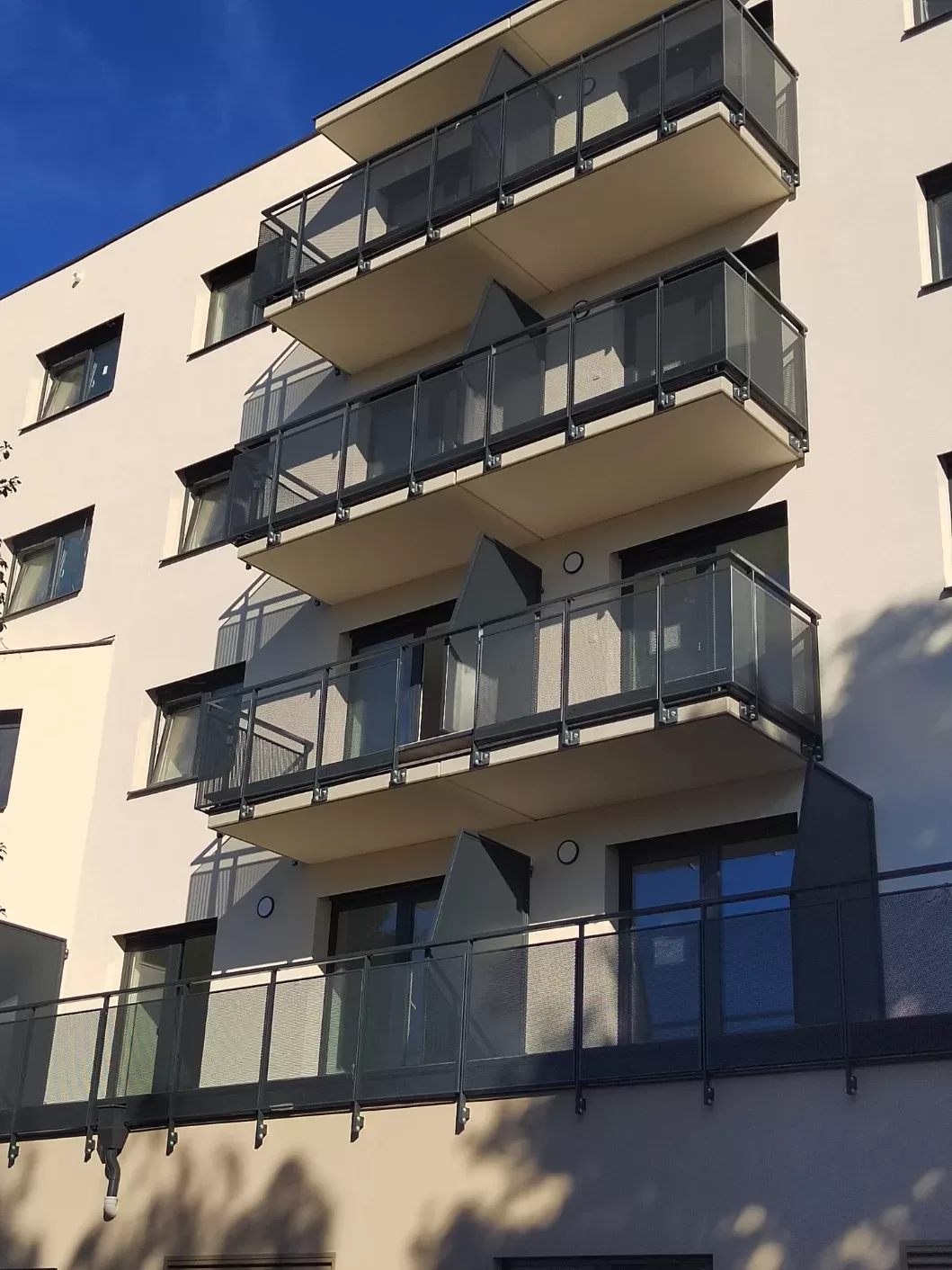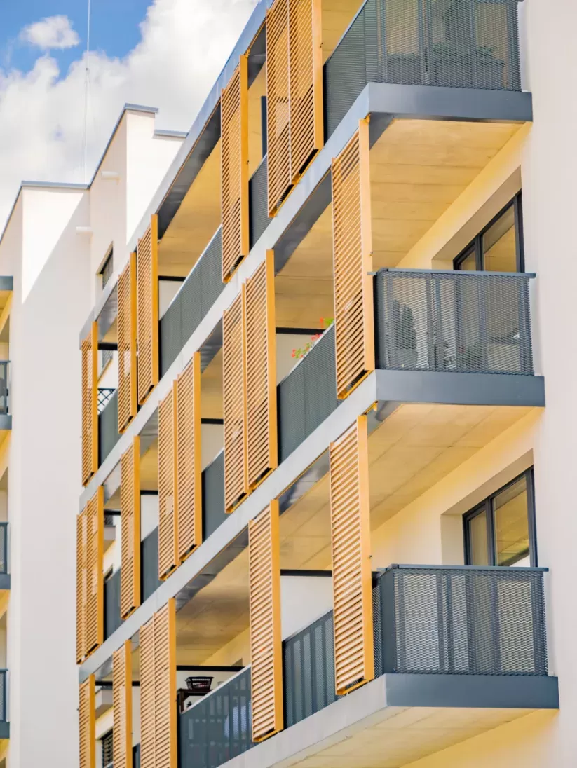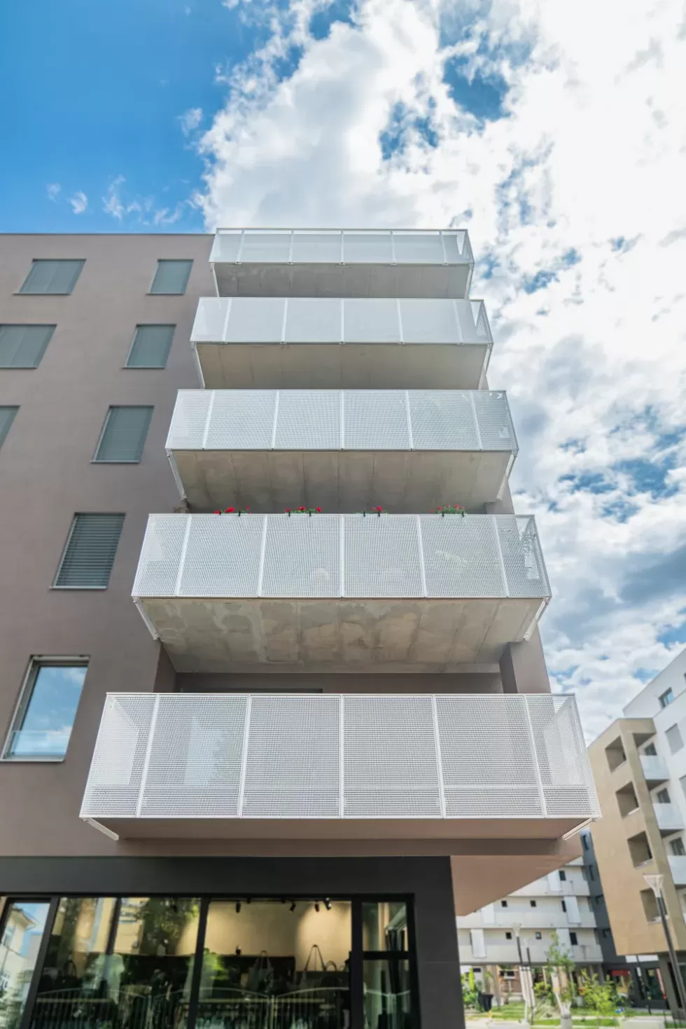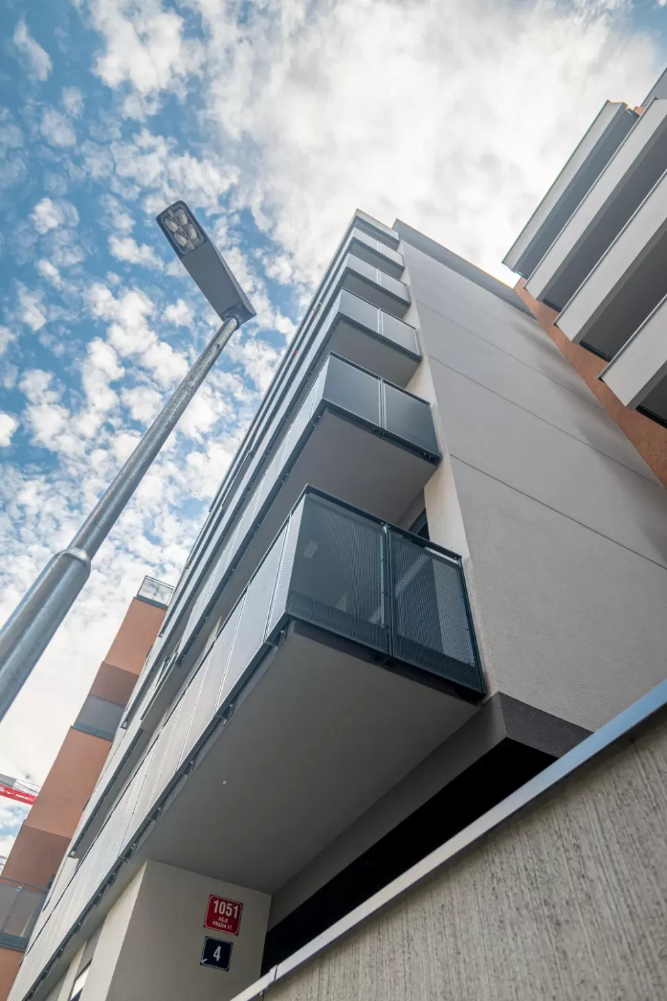 Použití: Výplně balkónů bytového domu | Typ: Děrovaný plech Rv 30-42 | Materiál: Pozinkovaný plech 1,5mm
