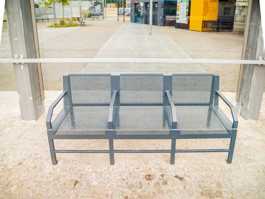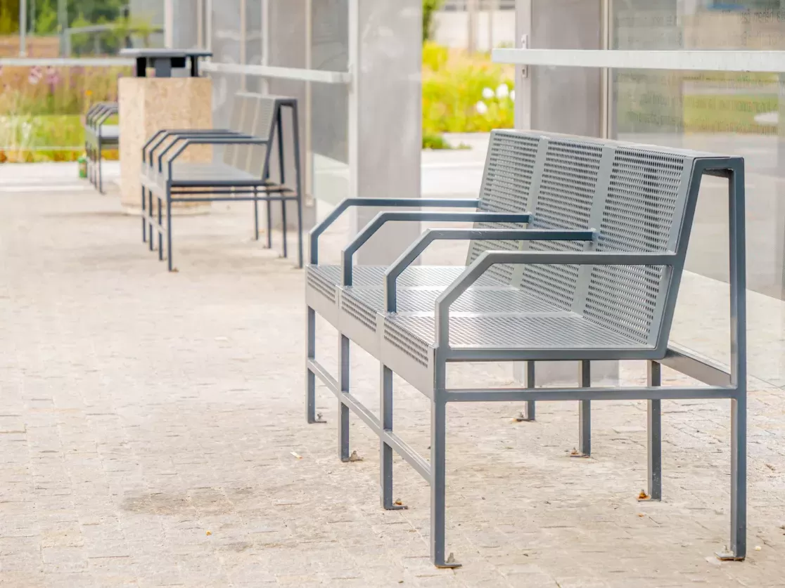Použití: Mobiliář | Typ: Děrovaný plech Rv 10-15 | Materiál: Ocel 2,0mm | Povrchová úprava: Komaxit pro venkovní užití