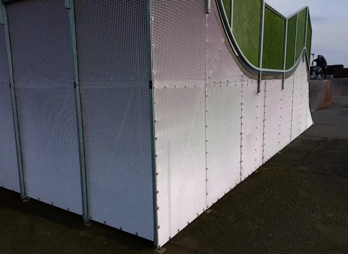 Použití: Prvky z tahokovu ve skateparku | Typ: Tahokov oko šestihranné 47 x 13 mm / můstek 5 mm | Materiál: Hliník 2,0 mm