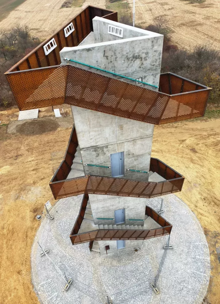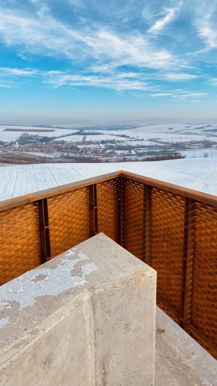 Použití: Výplň zábradlí z tahokovu | Typ: Tahokov oko kosočtvercové 110 x 52 mm / můstek 24 mm | Materiál: Corten 2mm | Generální dodavatel stavby a fotografií: RENOVA stavební a obchodní společnost s r.o.
